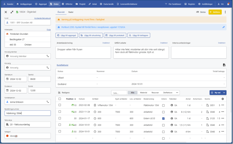 Du ser vilka arbeten som ska utföras samt de avslutade arbetsordrarna. Du får en bra överblick gällande pågående arbeten och det är lätt att se till att de blir klar i rätt tid. Enklast gör du planeringen i planeringskalendern som medföljer.