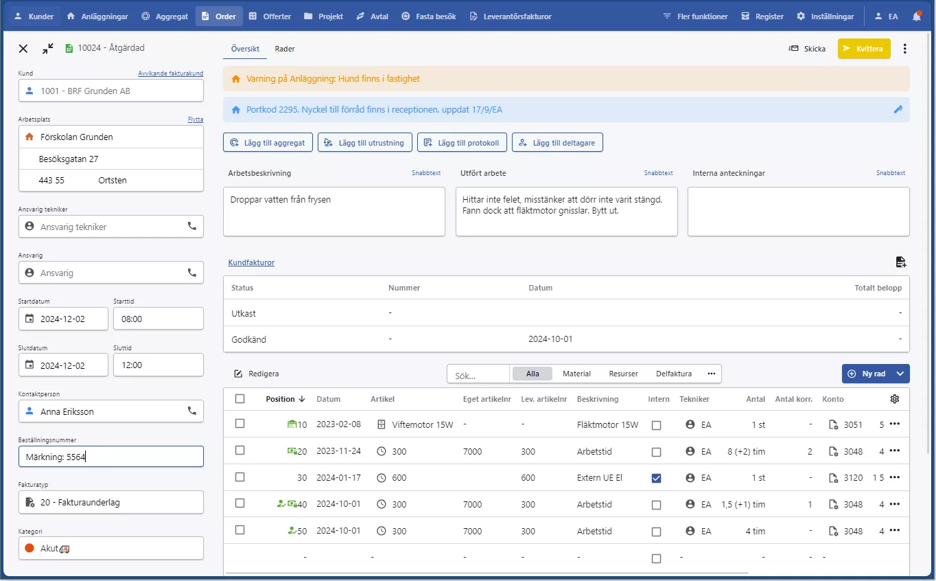 Låt kunden skapa sin felanmälning direkt. I portalen kan kunden även se anläggningar och skapa ordrar.