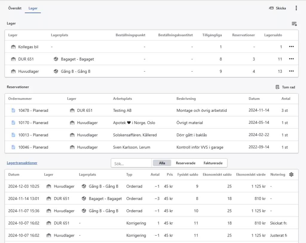 Lagervärde finner man enkelt i statistikmodulen. Där ser man också varje transaktion som skett